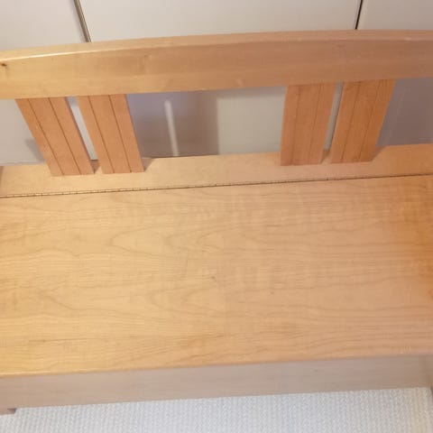 Juuri valmistunut itse tehty hirsipenkki. Hirret käsitelty pellavaöljyllä kertaalleen ja jalat maalattu yhden kerran valkealla maalilla. Todella painava ja täyttä käsityötä.