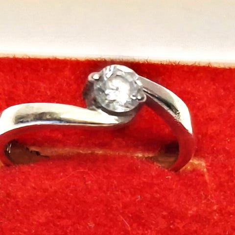 Sormusta on ajansaatossa pienennetty, vähäistä käytönjälkeä/tummentumaa.