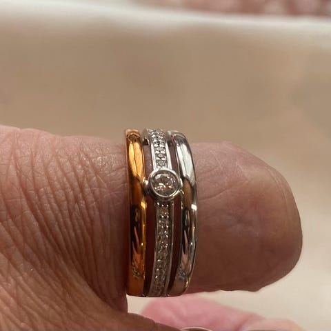 Saint Laurent Hopea ja Kristalli Sormus Unisex Vintage