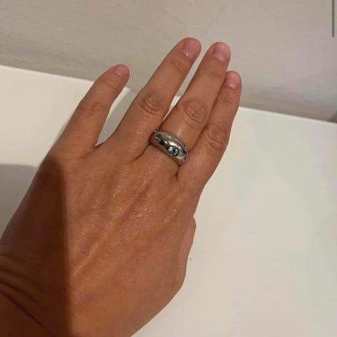 Saint Laurent hopea- ja kristallimateriaaleista valmistettu unisex-sormus. Sormus on suunniteltu sekä miehille että naisille, ja siinä yhdistyvät hopean kiilto ja kristallin koristeellisuus.