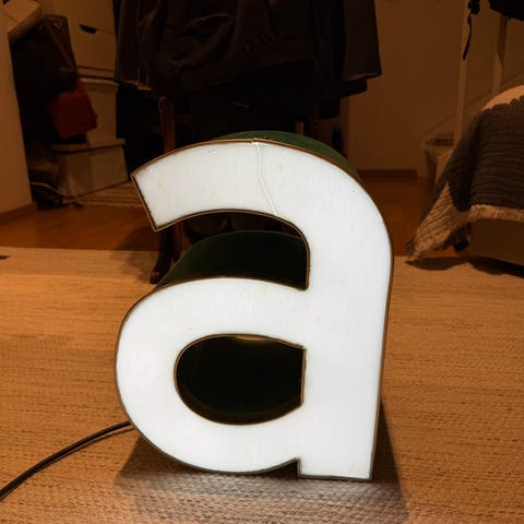 Toimiva, tunnelmallinen valokirjain. Pieni vaurio k:n hangassa, näkyy kuvassa.