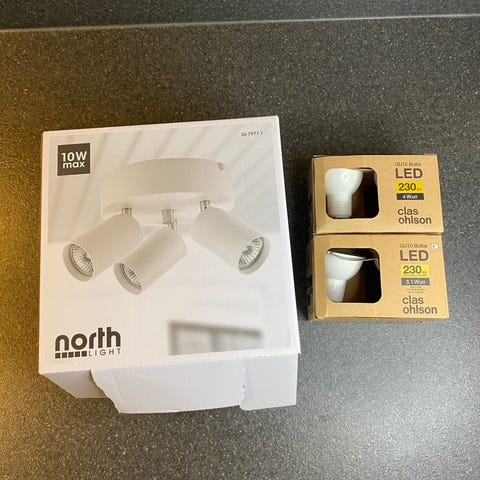 * Hakusanat: valaisin lamppu valaisimet lamput kattovalaisin kattovalo kattolamppu kattolamput led-polttimo led-lamppu polttimo seinävalaisin design moderni sisustusvalo sisustusvalaisin North Light Clas Ohlson