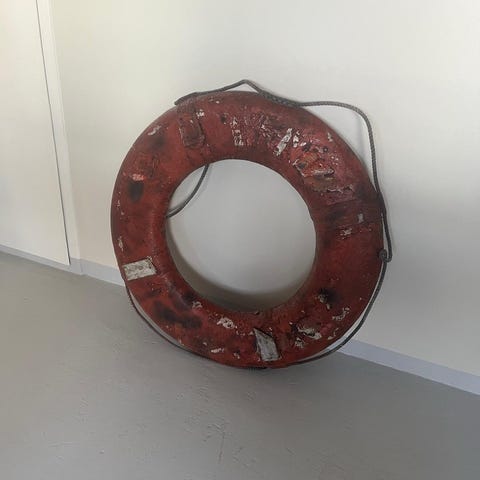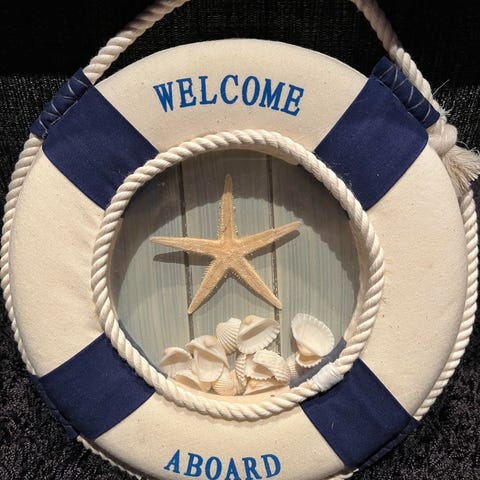 Hieno merellinen laiva-aiheinen koriste pelastusrengas,arviolta halkaisija n 29 cm.12€