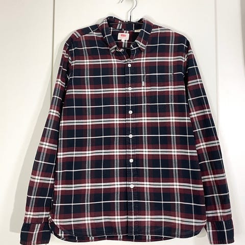 Levi's pitkähihainen kauluspaita, väri beige ja koko M, mutta sopii myös L-kokoiselle. Valmistettu 100 % puuvillasta.