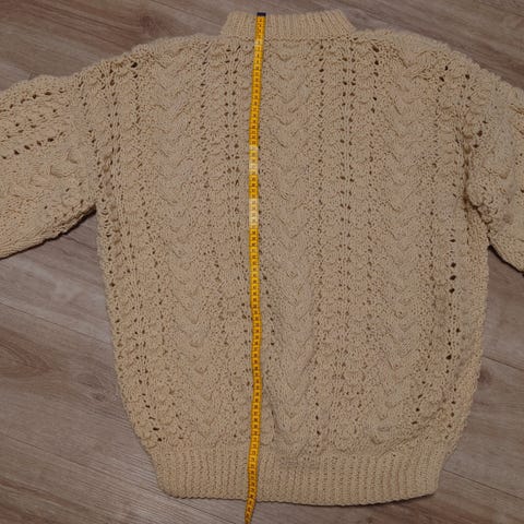 Suomessa valmistettu laadukas neuleliivi 100% merinovillaa. Pituus niskasta helmaan n 74cm, leveys kainaloiden kohdalta n 44cm.