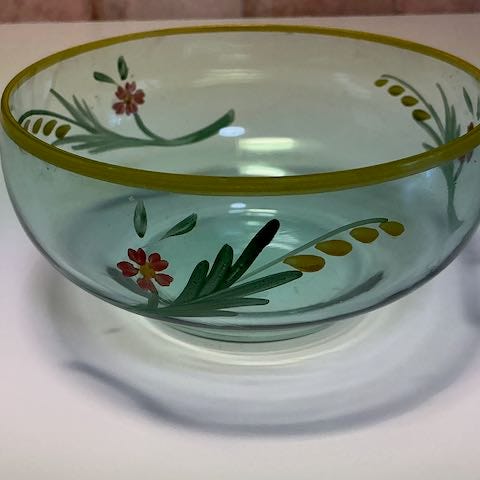 Kaunis, sininen jalallinen lasikulho. Korkeus noin 12cm, halkaisija noin 15cm. Kuin uusi.