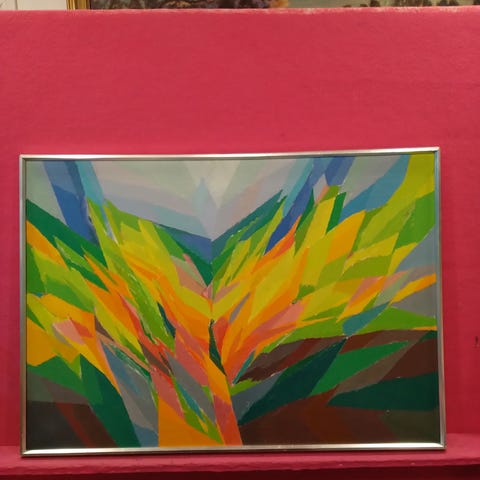 Mikko Mikkolan öljyvärityö vuodelta -87.Koko 33x26