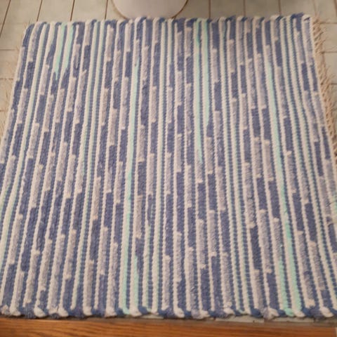 Froteinen uusi räsymatto 70 cm x 79 cm wc tiloihin. Värit: kolmea sinistä ja turkoosia vähän siellä täällä.