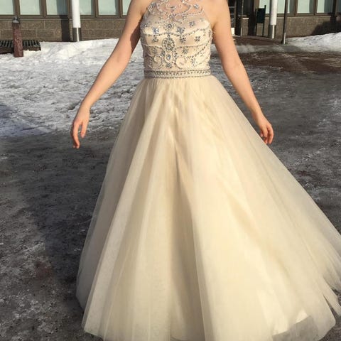 Vanhojentanssimekko ostettu Meccosta viime syksynä. Kerran käytetty tansseissa. Mekko liikkeen sivuilta ja on MEC120.vaaleansininen, kimalletta. Säädettävä yläosa. Mekon kauniisti koristeltu yläosa ja ilmava tyllihelma laskeutuu kivasti. Ei vannetta. Säilytetty Meccon omassa pukupussiissan. Kuin uusi. Kokoa M/L. . Hinta Meccossa 379e. Pukupussi sisältyy hintaan.
