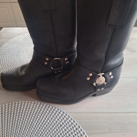 Hyväkuntoiset, upeat, vähällä käytöllä olleet laadukkaat nahkabootsit. Kengissä on äärimmäisen vähäistä käytön jälkeä kärjissä, jota ei juuri huomaa. Itselle hiukan väärän kokoiset, jonka takia myyntiin. Pohjat hyvässä kunnossa. Soljet avataan, jolloin kenkä aukeaa ja menee kivasti jalkaan.