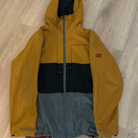 Vähän käytetty takki, kulumaa vain valkoisissa koristeteippauksissa. Lumistoppari vetiketjulla, saa halutessaan pois.