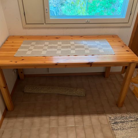 Hyväkuntoinen Laulumaan täyspuinen ruokapöytä. Jatkettuna 180 cm