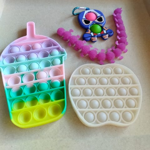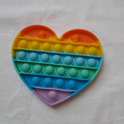 Pop It Delfiini on lasten lelu, joka on väriltään sateenkaaren väreissä.
