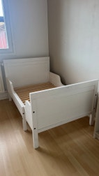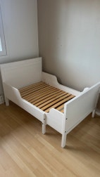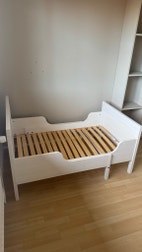 Lasten jatkettava sänky. Sänky on hyvässä kunnossa, ei mitään suuria käytönjälkiä mutta ei tietysti uuden veroinenkaan.