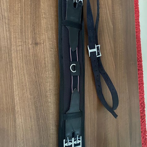 Tosi siistikuntoinen anatomisesti muotoiltu, synteettinen satulavyö / kouluvyö, nimikoitu mutta ei ehkä käytetty ollenkaan. Koko 75 cm.