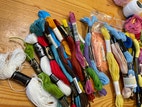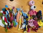 kauniita värejä kaikki loppuja on kiva iso kourallinen, mukaan laitan pari virkkuulangan loppuakin. Hinta 15 ja toimitus