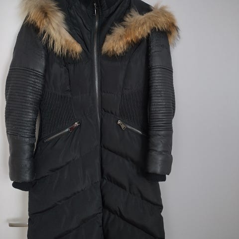 Takki on hihoista lähtenyt kuoriutumaan muuten takki on hyvässä kunnossa ja lämmin.