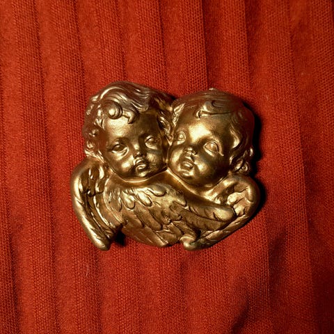 Kolme kipsienkeliä, kaksi messinki kelloa ja messinki kyntiläjalka. Kaikki yhteensä 20€. Lähetys onnistuu kuluja vastaan