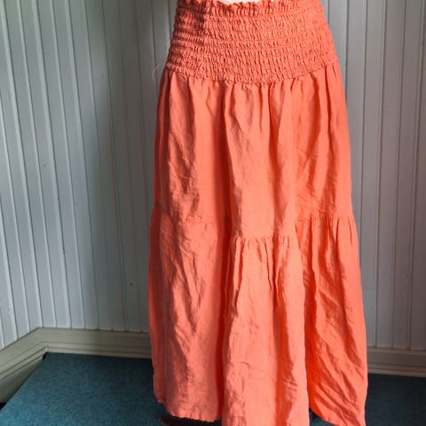 Kaunis valkoinen pellavahame helmakirjailulla. Vuori.