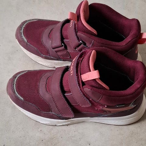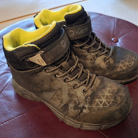 Lasten 35 kokoiset välikausikengät. Olleet lähinnä syksyisillä retkillä käytössä ja hyväksi havaitut! DrymaxX eli vedenkestävyyttäkin löytyy. Muutama heijastinkin kengän pinnassa. Erittäin käyttökelpoiset vielä, sen verran vähä käytetty. Pientä normaalia kulumisen jälkeä pinnassa (sekä hieman kuraa kärjessä, luulen että pesulla lähtee jos häiritsee), joka ei käyttöön vaikuta. Sisämitta n.22cm.