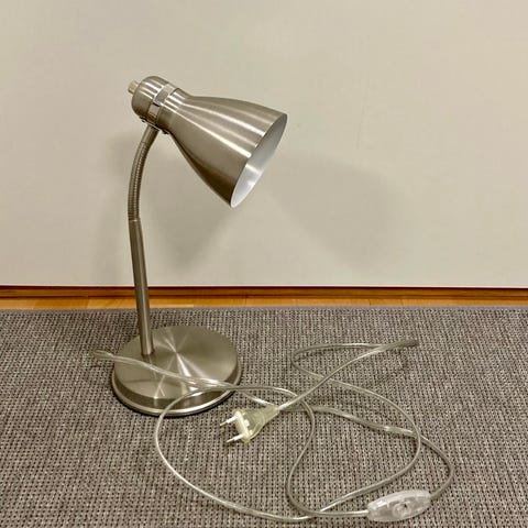 Myydään kuvan mukainen E 14 kantaisella ledilampulla varustettu täysin kunnossa oleva valaisin kodin kaunistukseksi tai hyötykäyttöön lukulamppuna, Miel. nouto.