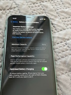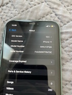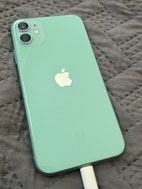 Apple iPhone 11 älypuhelin, 64 GB tallennusmuistilla, vihreä väriltään. Laite toimii iOS 18.5 -käyttöjärjestelmällä. Akku on suunniteltu Apple Battery Health -toiminnolla, maksimikapasiteetti 74 %, ja siinä on optimoitu pikalataus. Puhelimen malli on MWLY2FS/A.