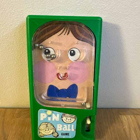 Vanha muovinen pöytäflipperi.