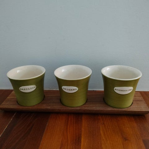 Yrttipurkki, jossa lautanen kastelua varten