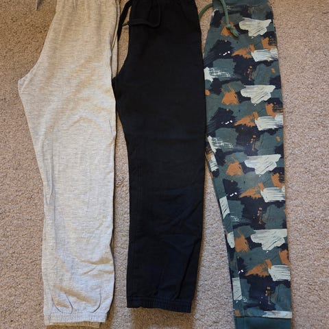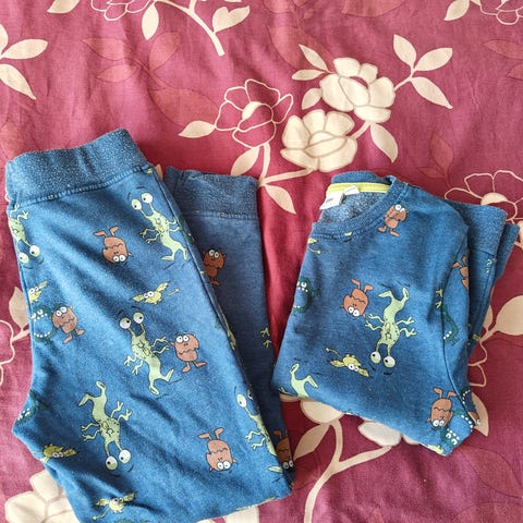 Yhdellä lapsella käytössä ollut collegesetti: housut ja pusero.