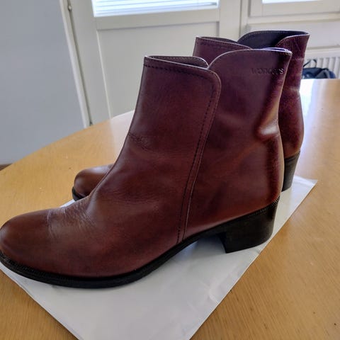 Alberto Guardiani nilkkurit kiiltonahka tai en kyllä löydä että olisi aitoa nahkaa, joten ehkä ovat tekonahkaa kuitenkin? En käyttänyt lainkaan. Siksi myyn pois.