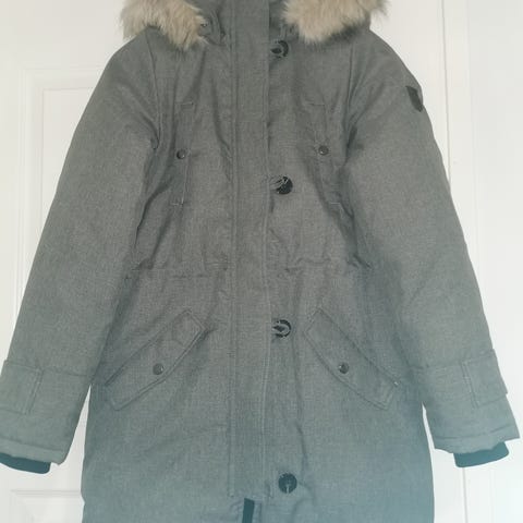 Esmara M kokoinen naisten harmaa ulkotakki. Takissa on vetoketjukiinnitys ja kevyt toppaus. Materiaali on ohut ja sopii ulkokäyttöön. Takissa on huppu ja se on suunniteltu tarjoamaan suojaa viileämmillä säillä.muuten on siisti ja ehjä , tarvitse pientä korjausta - pieni repeämä ompelutaittoiselle :) , katso kuva.