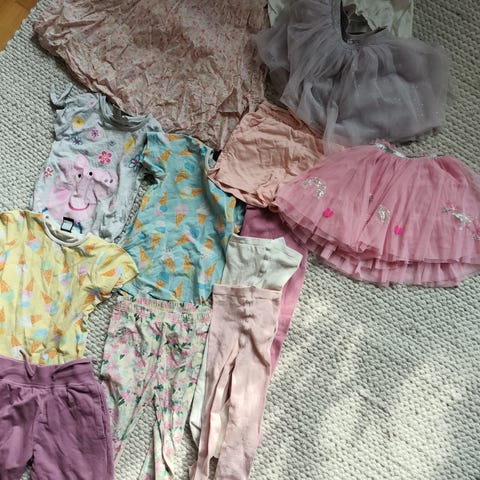 Myydään lasten vaatteita, yksi joulumekko, kaksi kesämekkoa, 1 pitkähihainen mekko, 2 pitkähihaista paitaa, yösortsit, 2 t-paitaa, 3 hametta.