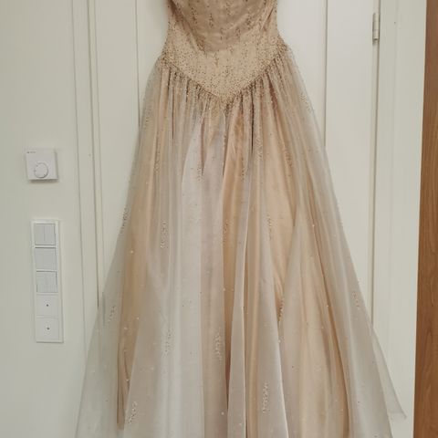 Myynnissä vanhojentassimekkona käytetty mekko. Mekko on lyhennetty 164cm pituiselle sopivaksi(kuvassa mekkoa ei ole vielä lyhennetty). Mekossa ei ole tahroja ja käytetty vain yhdissä tansseissa.