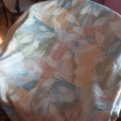 Noin 7 metriä verhokangasta ehkä pellavaa tai juuttia. Leveys n 120 cm