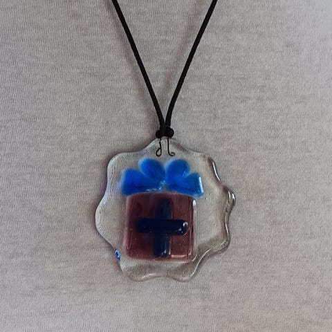 Valkoinen. Lasia. Musta nauha. Itse suunniteltu ja käsityönä valmistettu.