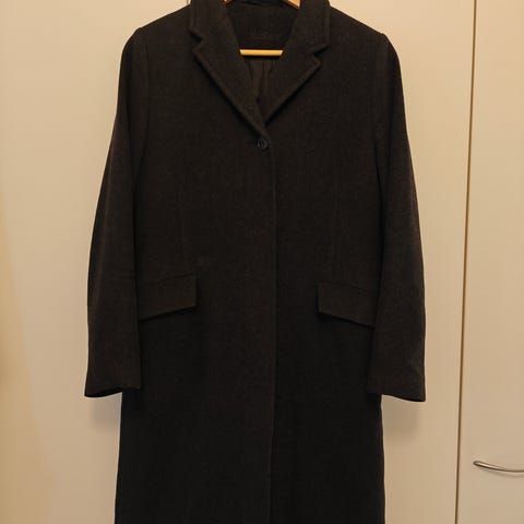 Vain muutaman kerran käytetty, lähes uutta vastaavassa kunnossa oleva villakangastakki. Väri tummanharmaa. Koko 42. Lisätietoja kuvista.