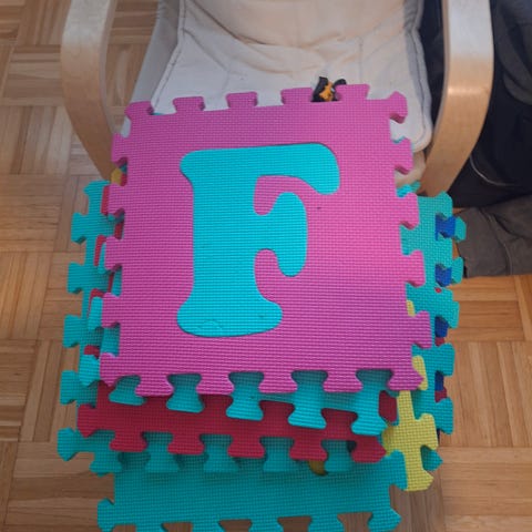Annetaan vauvan leikkimatto ja muita vauvan leluja, keinu lammas joka vaatii korjausta, muita pehmoleluja, pari taulua, vilttejä esim. ulos piknikille. Kaikissa mahdollisesti jotain pikkuvikaa, kuten tahraa, reikää ym. Kaksi isoa laatikkoa + lammas.