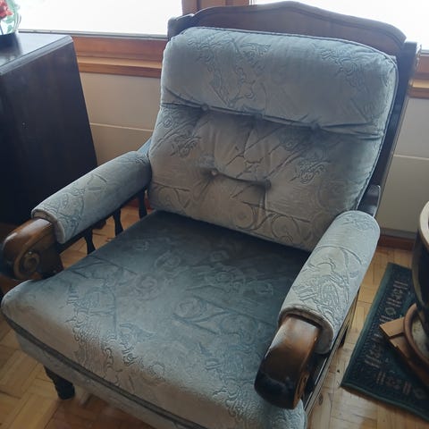 Rungot ovat massiivipuuta ja istuintyynyt mukavat. Kangas saa puhdistettua tekstiilipesurilla.