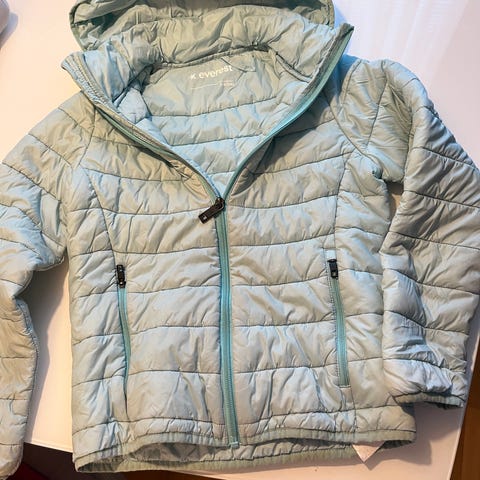 Kuvat 2-4. Everestin muhkea toppatakki. Vain kerran pesty. Muuten kuin uusi mutta hihassa ja takin etuosassa risusta tulleet pienet viillot. Tarrapaikalla menee nätisti piiloon, voin antaa mukaan. Koko 140. 10 euroa