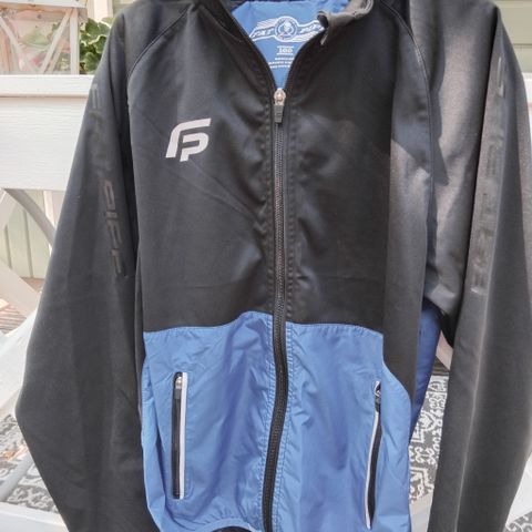 Sini-puna-vihreä ohut 160 cm F&M Sport takki polyamidia. Hylkii hyvin vettä, mutta saumat ei ole vesitiiviit. Vetoketju ja kaikki nepparit hyvässä kunnossa, niinkuin muutenkin.