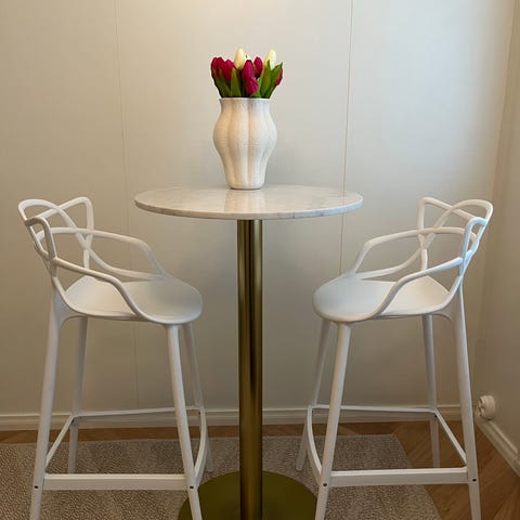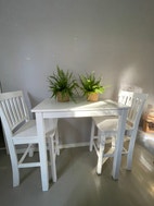 Kaunis valkoinen baaripöytä ja tuolit