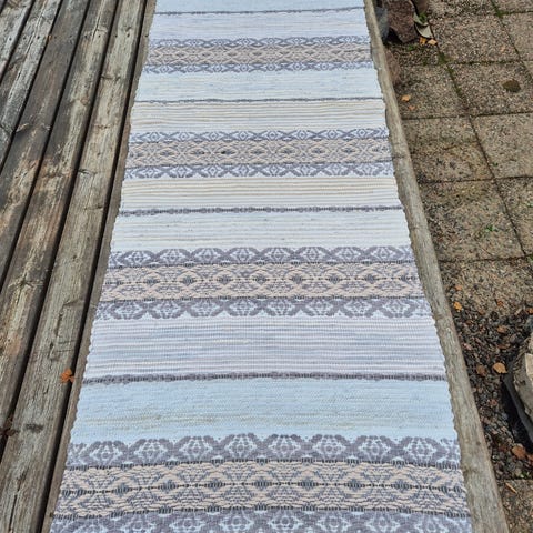 Myydään käsinkudottu raidallinen räsymatto 80x300 cm puuvilla