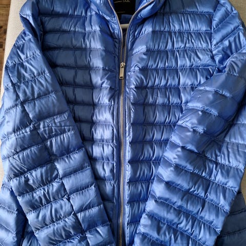 Lämmin ja kevyt untuvatakki hyvässä kunnossa. Pieni tahra (näkyy kuvassa), muuten puhdas ja siisti.