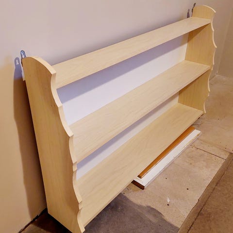 Mäntypuinen , mustaksi vahattu omavalmisteinen seinähylly.