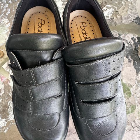 Podowell seniorikengät, kuin uudet. koko 44. Kengät ovat mustat, avonaiset ja valmistettu pehmeästä materiaalista. Kengissä on säädettävät tarrakiinnitykset ja irrotettavat pohjalliset. Sopivat käytettäväksi sisä- tai ulkokäytössä, erityisesti tilanteissa joissa tarvitaan mukavuutta ja helppoa säätöä.