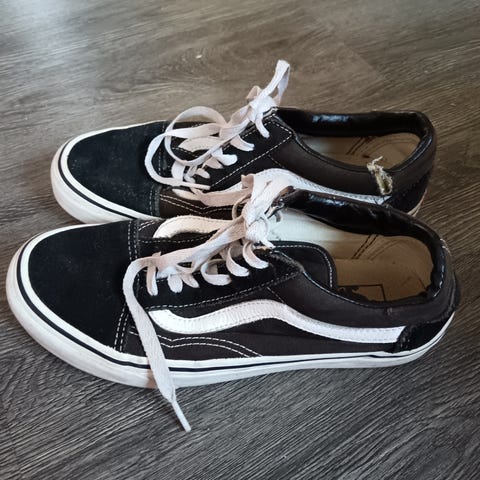 Vans Tennarit kengät, koko 38. Musta väri ja klassinen malli. Käytetyt kengät, joissa näkyy käytön jälkiä. Sopii arkikäyttöön. Vaatii pesun