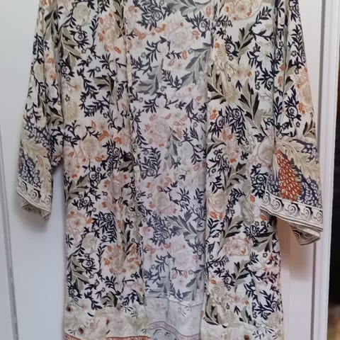 Vilan värikäs kimono/takki, koko 38. Ranta-asuksi, aamutakiksi.