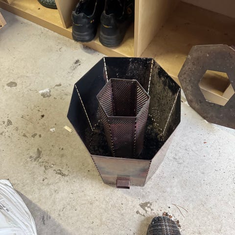 Muutaman kerran käytetty pelletin polttokori. Väristään huolimatta ei ole puhkipalanut.