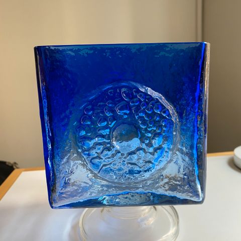 Upea sininen lasivaasi. Pohjassa signeeraus Kaj Blomqvist Oy Kumela. Virheetön.