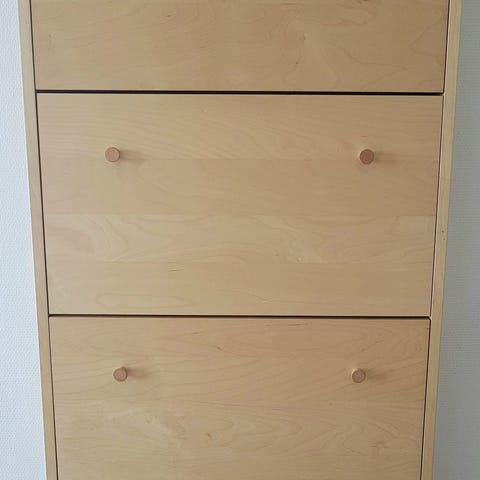 Kaksi avattavaa laatikkoa, kummassakin laatikossa kaksi tasoa kengille.